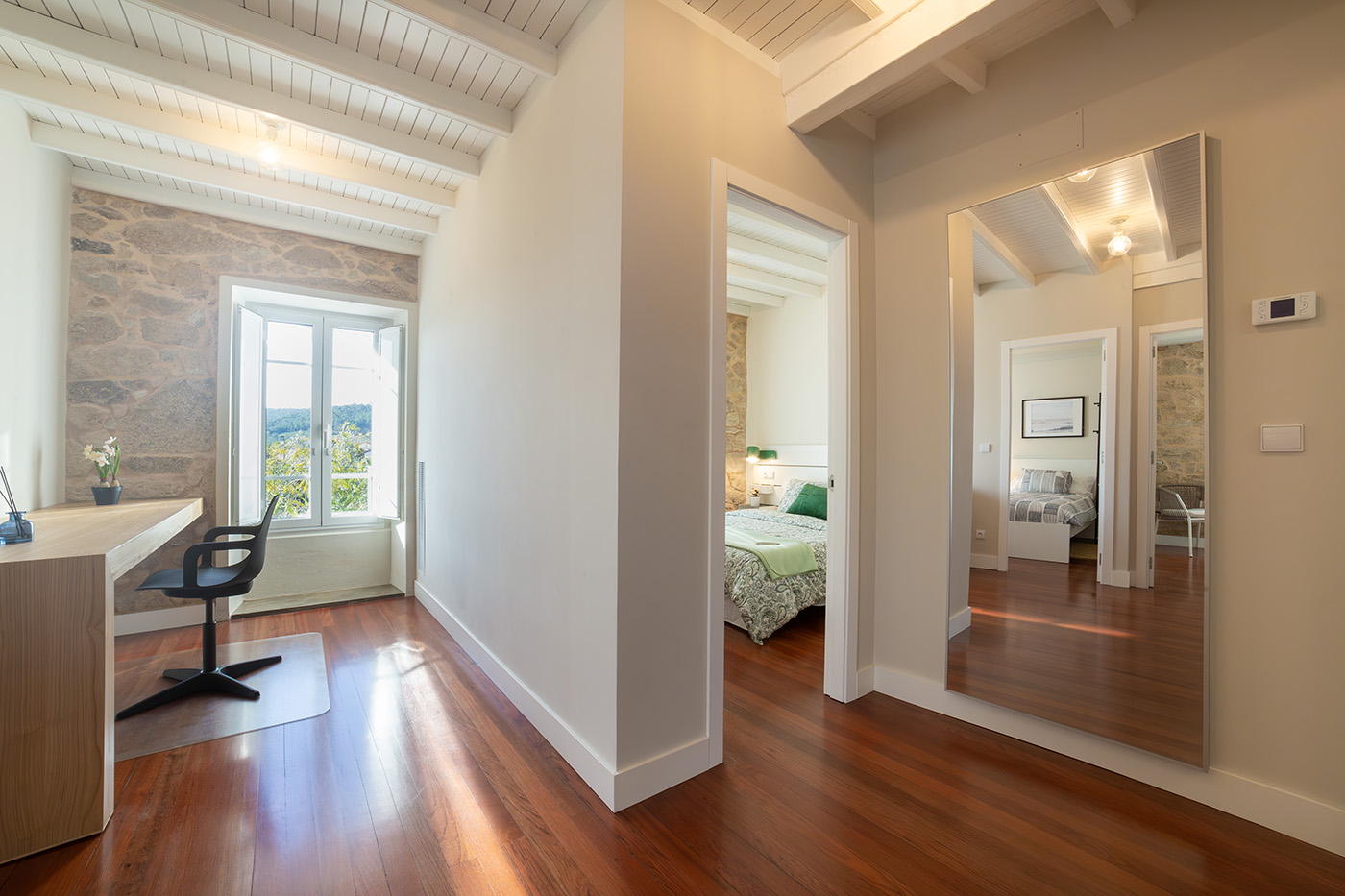En nuestra casa encontrarás el equilibrio perfecto tanto para relajarte como concentrarte. Hemos pensado en cada detalle: ropa de cama suave, ambientes diáfanos, Wi-Fi rápido y un acogedor espacio de trabajo, todo para que te sientas realmente a gusto.